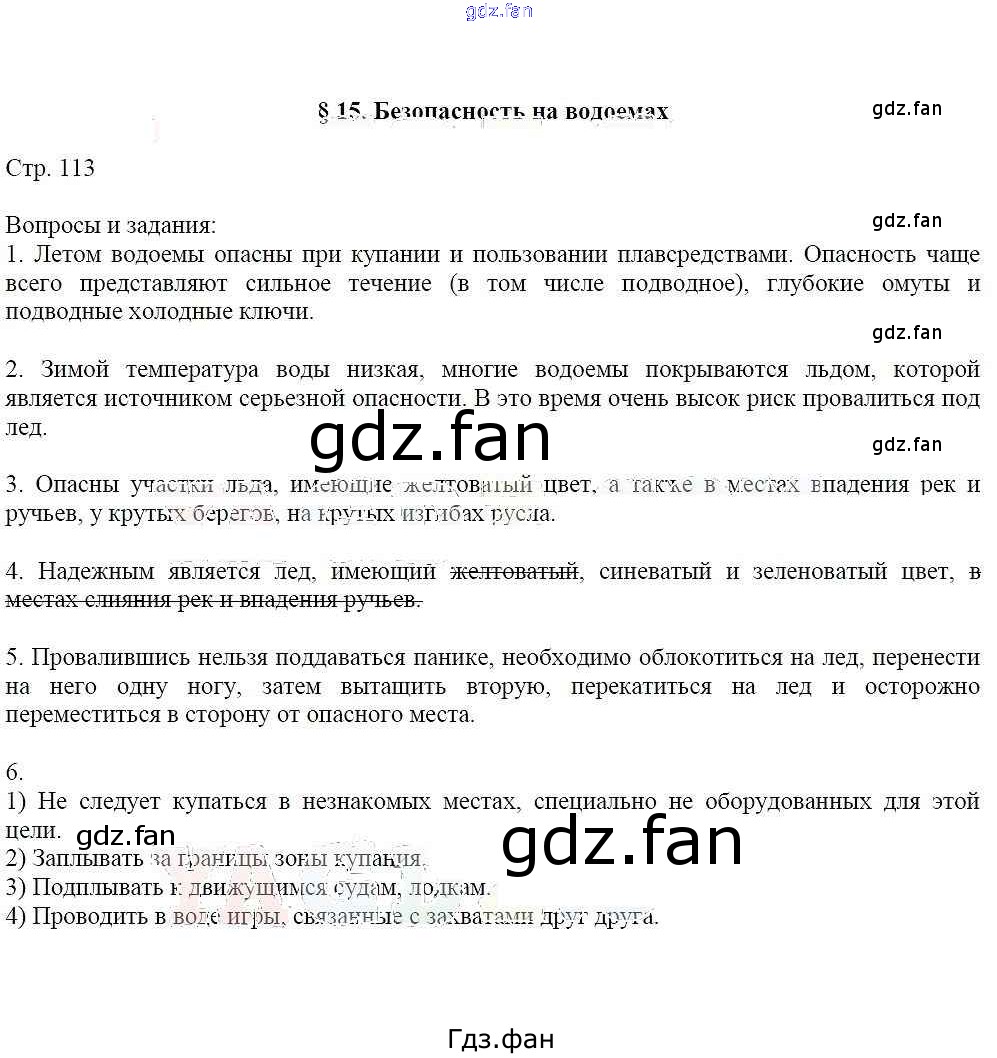 Проверка домашнего задания всегда занимает большое количество времени. На помощь приходит ГДЗ фан по ОБЖ шестого класса. Здесь собраны популярные ответы на 113 (§15) ОБЖ 6 класс Маслов А.Г.