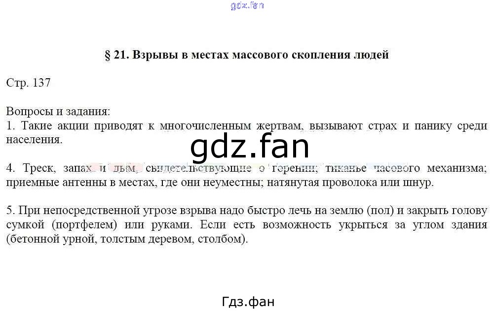 Проверка домашнего задания всегда занимает большое количество времени. На помощь приходит ГДЗ фан по ОБЖ шестого класса. Здесь собраны популярные ответы на 137 (§21) ОБЖ 6 класс Маслов А.Г.
