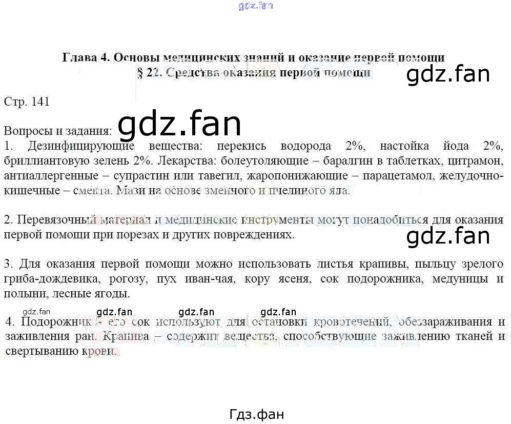 Проверка домашнего задания всегда занимает большое количество времени. На помощь приходит ГДЗ фан по ОБЖ шестого класса. Здесь собраны популярные ответы на 141 (§22) ОБЖ 6 класс Маслов А.Г.