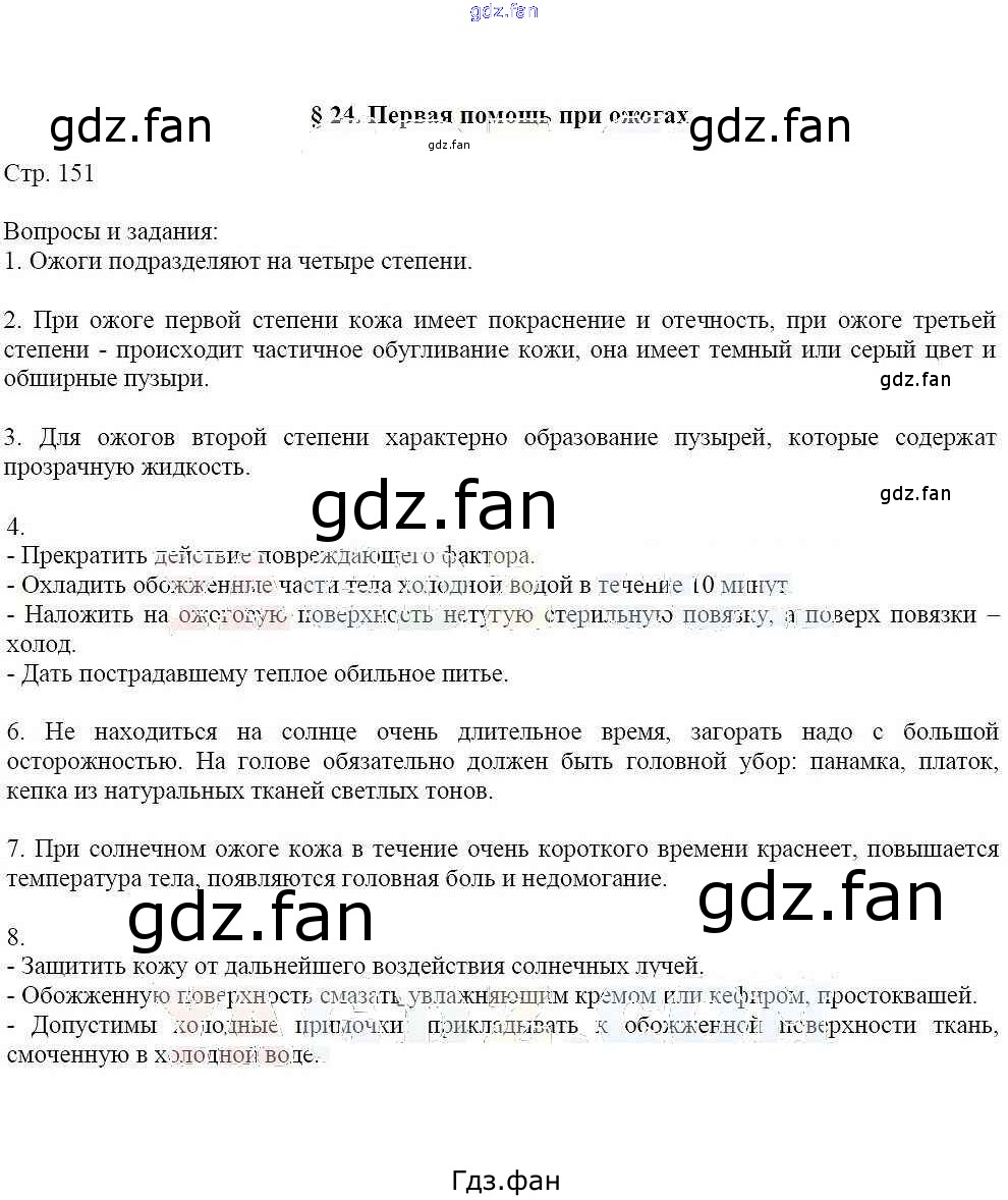 Проверка домашнего задания всегда занимает большое количество времени. На помощь приходит ГДЗ фан по ОБЖ шестого класса. Здесь собраны популярные ответы на 151 (§24) ОБЖ 6 класс Маслов А.Г.