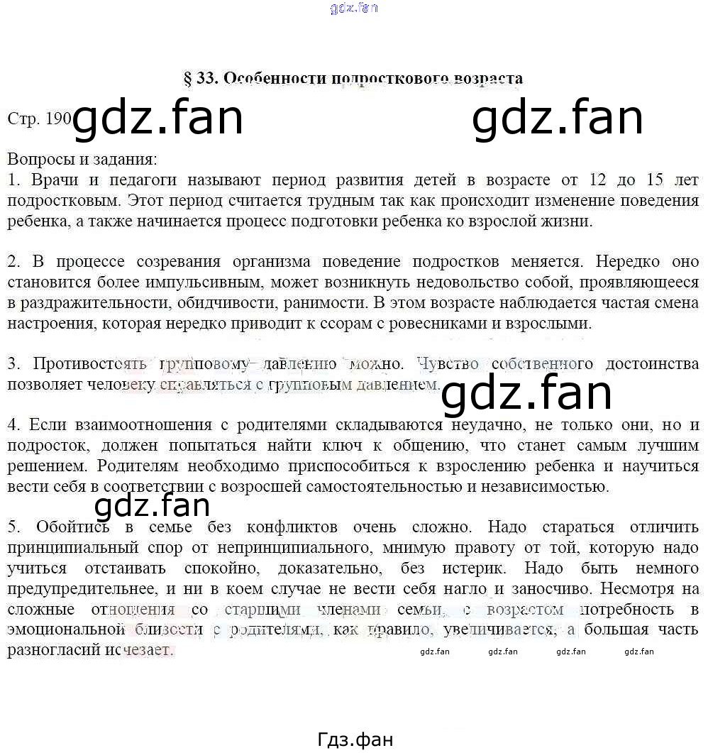 Проверка домашнего задания всегда занимает большое количество времени. На помощь приходит ГДЗ фан по ОБЖ шестого класса. Здесь собраны популярные ответы на 190 (§33) ОБЖ 6 класс Маслов А.Г.