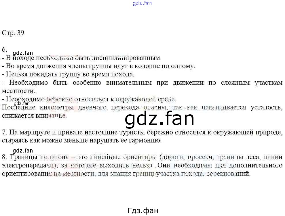 Проверка домашнего задания всегда занимает большое количество времени. На помощь приходит ГДЗ фан по ОБЖ шестого класса. Здесь собраны популярные ответы на 39 (§5) ОБЖ 6 класс Маслов А.Г.