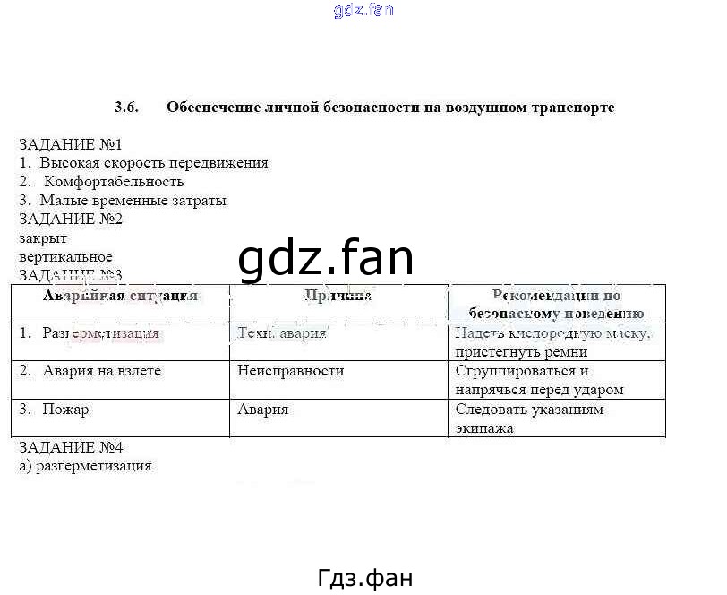 Проверка домашнего задания всегда занимает большое количество времени. На помощь приходит ГДЗ фан по ОБЖ шестого класса. Здесь собраны популярные ответы на 3.6 (стр. 35) ОБЖ 6 класс рабочая тетрадь Смирнов А.Т.