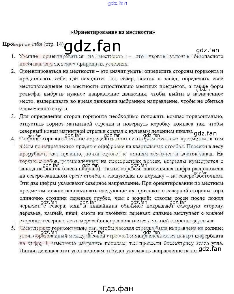 Проверка домашнего задания всегда занимает большое количество времени. На помощь приходит ГДЗ фан по ОБЖ шестого класса. Здесь собраны популярные ответы на стр. 14 ОБЖ 6 класс Смирнов А.Т.