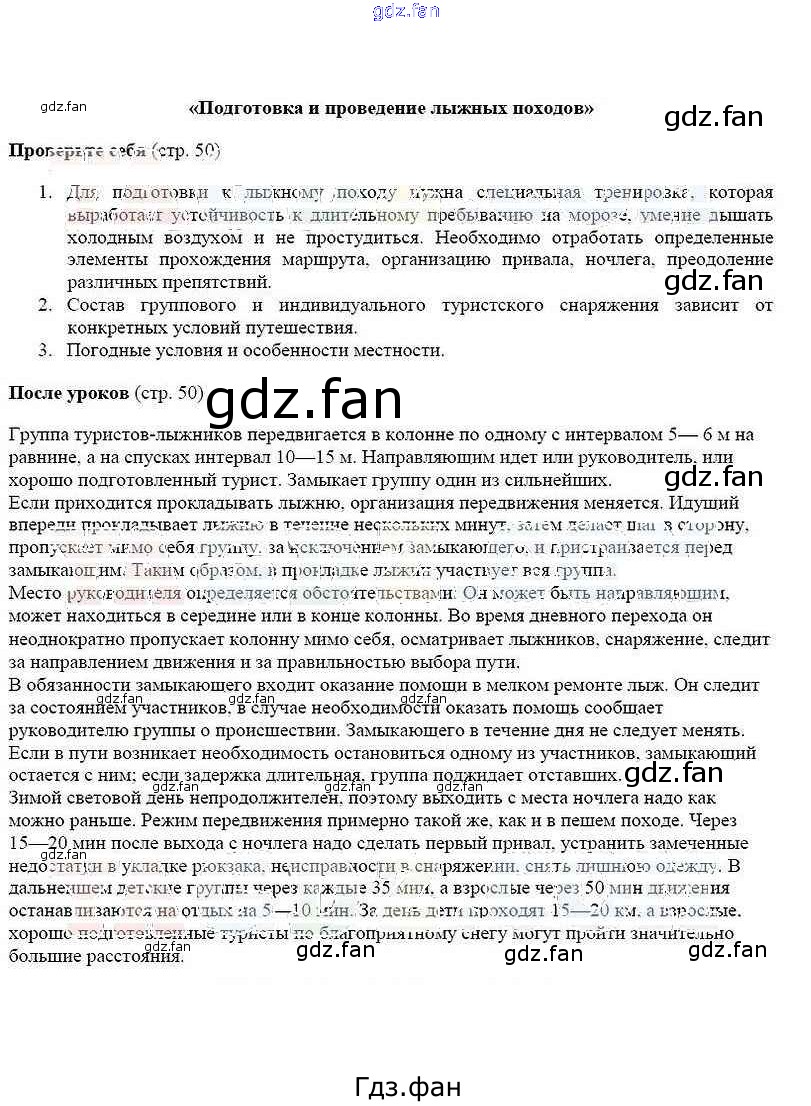 Проверка домашнего задания всегда занимает большое количество времени. На помощь приходит ГДЗ фан по ОБЖ шестого класса. Здесь собраны популярные ответы на стр. 50 ОБЖ 6 класс Смирнов А.Т.