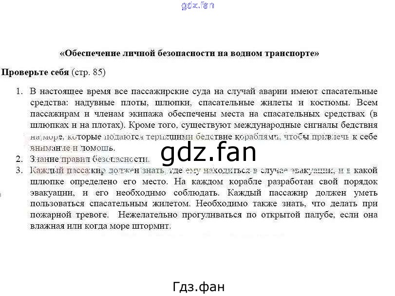 Проверка домашнего задания всегда занимает большое количество времени. На помощь приходит ГДЗ фан по ОБЖ шестого класса. Здесь собраны популярные ответы на стр. 85 ОБЖ 6 класс Смирнов А.Т.