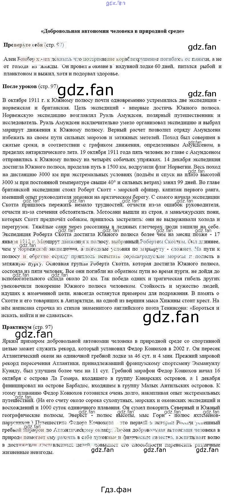 Проверка домашнего задания всегда занимает большое количество времени. На помощь приходит ГДЗ фан по ОБЖ шестого класса. Здесь собраны популярные ответы на стр. 97 ОБЖ 6 класс Смирнов А.Т.