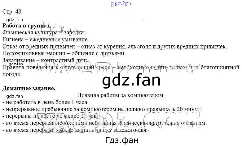 Проверка домашнего задания всегда занимает большое количество времени. На помощь приходит ГДЗ фан по ОБЖ пятого класса. Здесь собраны популярные ответы на стр. 48 ОБЖ 5-6 класы Виноградова Н.Ф.