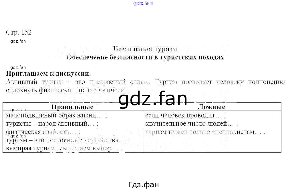 Проверка домашнего задания всегда занимает большое количество времени. На помощь приходит ГДЗ фан по ОБЖ седьмого класса. Здесь собраны популярные ответы на стр. 152 ОБЖ 7-9 классы Виноградова Н. Ф.