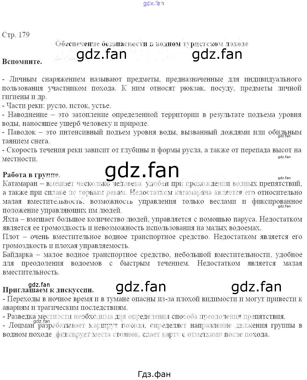 Проверка домашнего задания всегда занимает большое количество времени. На помощь приходит ГДЗ фан по ОБЖ седьмого класса. Здесь собраны популярные ответы на стр. 179 ОБЖ 7-9 классы Виноградова Н. Ф.