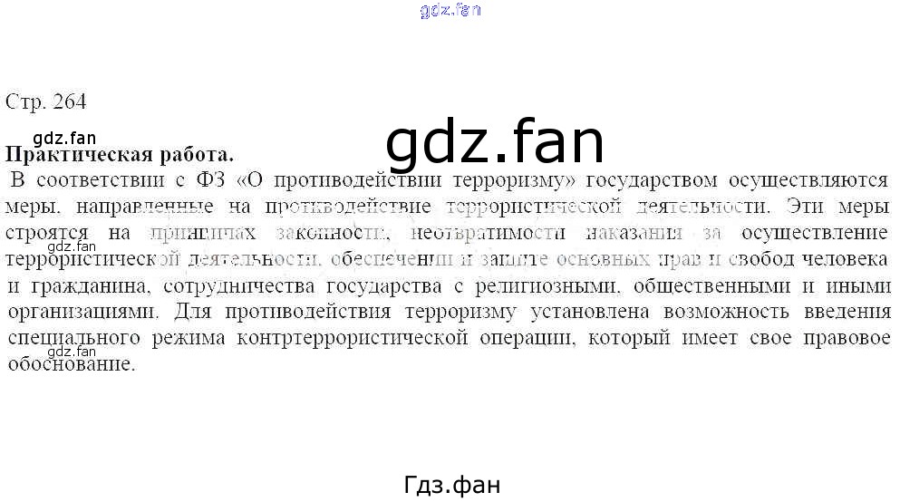 Проверка домашнего задания всегда занимает большое количество времени. На помощь приходит ГДЗ фан по ОБЖ седьмого класса. Здесь собраны популярные ответы на стр. 264 ОБЖ 7-9 классы Виноградова Н. Ф.