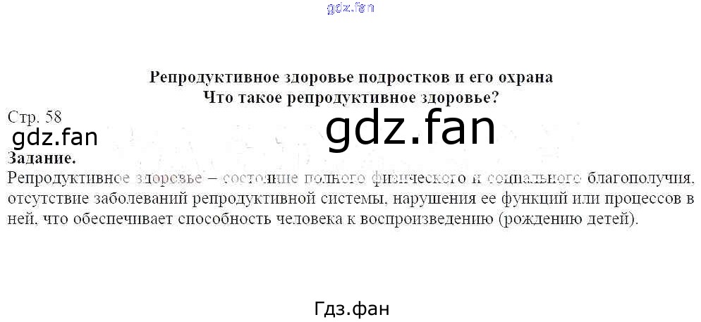 Проверка домашнего задания всегда занимает большое количество времени. На помощь приходит ГДЗ фан по ОБЖ седьмого класса. Здесь собраны популярные ответы на стр. 58 ОБЖ 7-9 классы Виноградова Н. Ф.