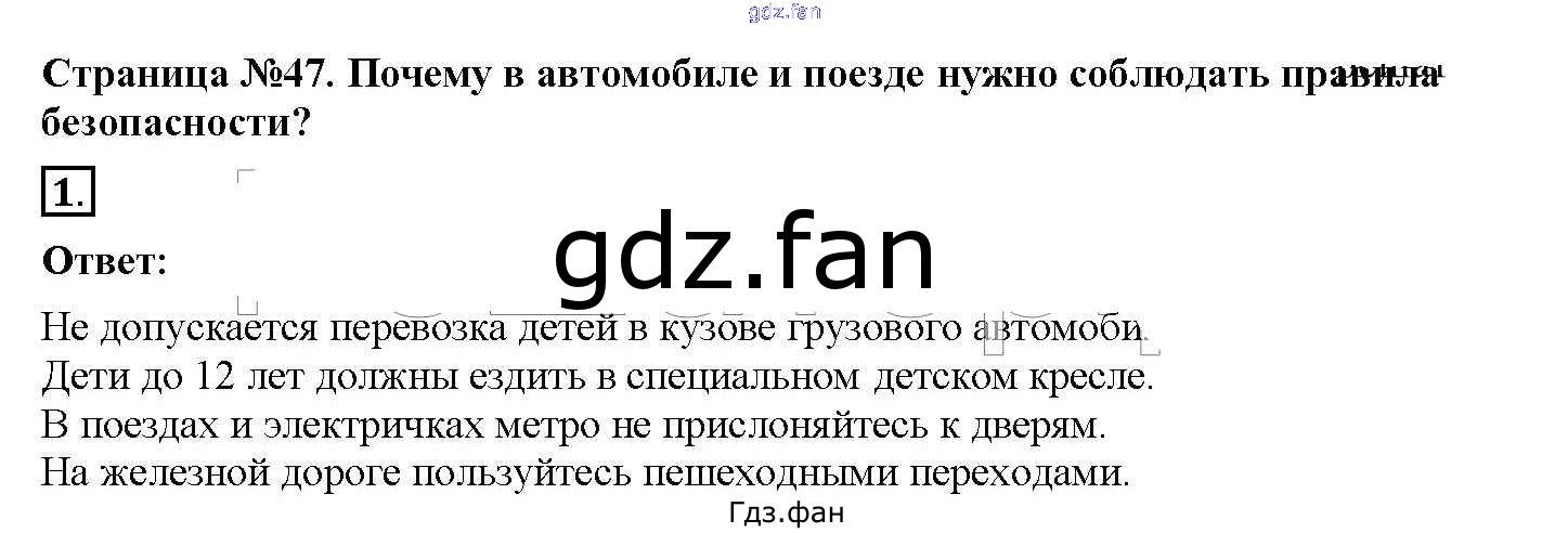 Проверка домашнего задания всегда занимает большое количество времени. На помощь приходит ГДЗ фан по Окружающему миру первого класса. Здесь собраны популярные ответы на 47 (Почему в автомобиле и поезде нужно соблюдать правила безопасности? № 1, 2) Окружающий мир 1 класс рабочая тетрадь Плешаков (в 2-х частях)