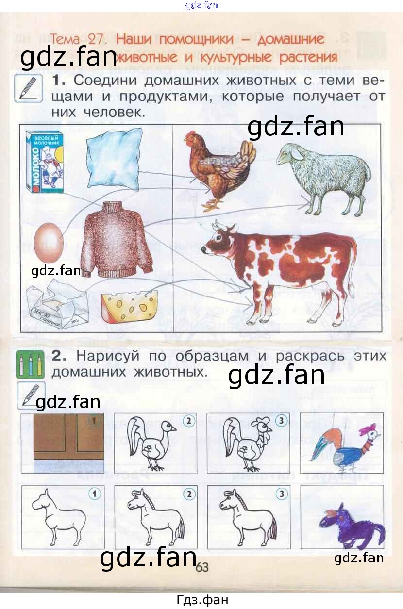 Проверка домашнего задания всегда занимает большое количество времени. На помощь приходит ГДЗ фан по Окружающему миру первого класса. Здесь собраны популярные ответы на 63 (Тема 27. Наши помощники -домашние животные и культурные растения № 1, 2) Окружающий мир 1 класс рабочая тетрадь Вахрушев А.А.