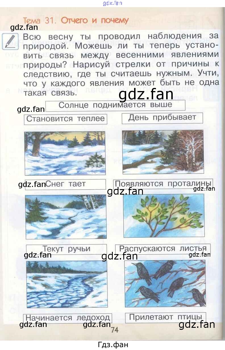 Проверка домашнего задания всегда занимает большое количество времени. На помощь приходит ГДЗ фан по Окружающему миру первого класса. Здесь собраны популярные ответы на 74 (Тема 31. Отчего и почему) Окружающий мир 1 класс рабочая тетрадь Вахрушев А.А.