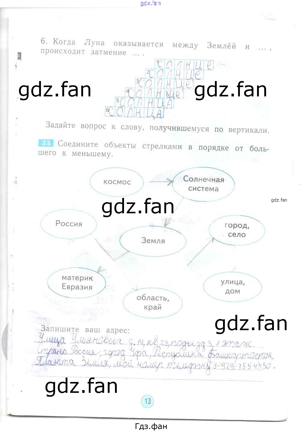 Проверка домашнего задания всегда занимает большое количество времени. На помощь приходит ГДЗ фан по Окружающему миру второго класса. Здесь собраны популярные ответы на 13 (№ 33) Окружающий мир 2 класс рабочая тетрадь Дмитриева Н.Я.