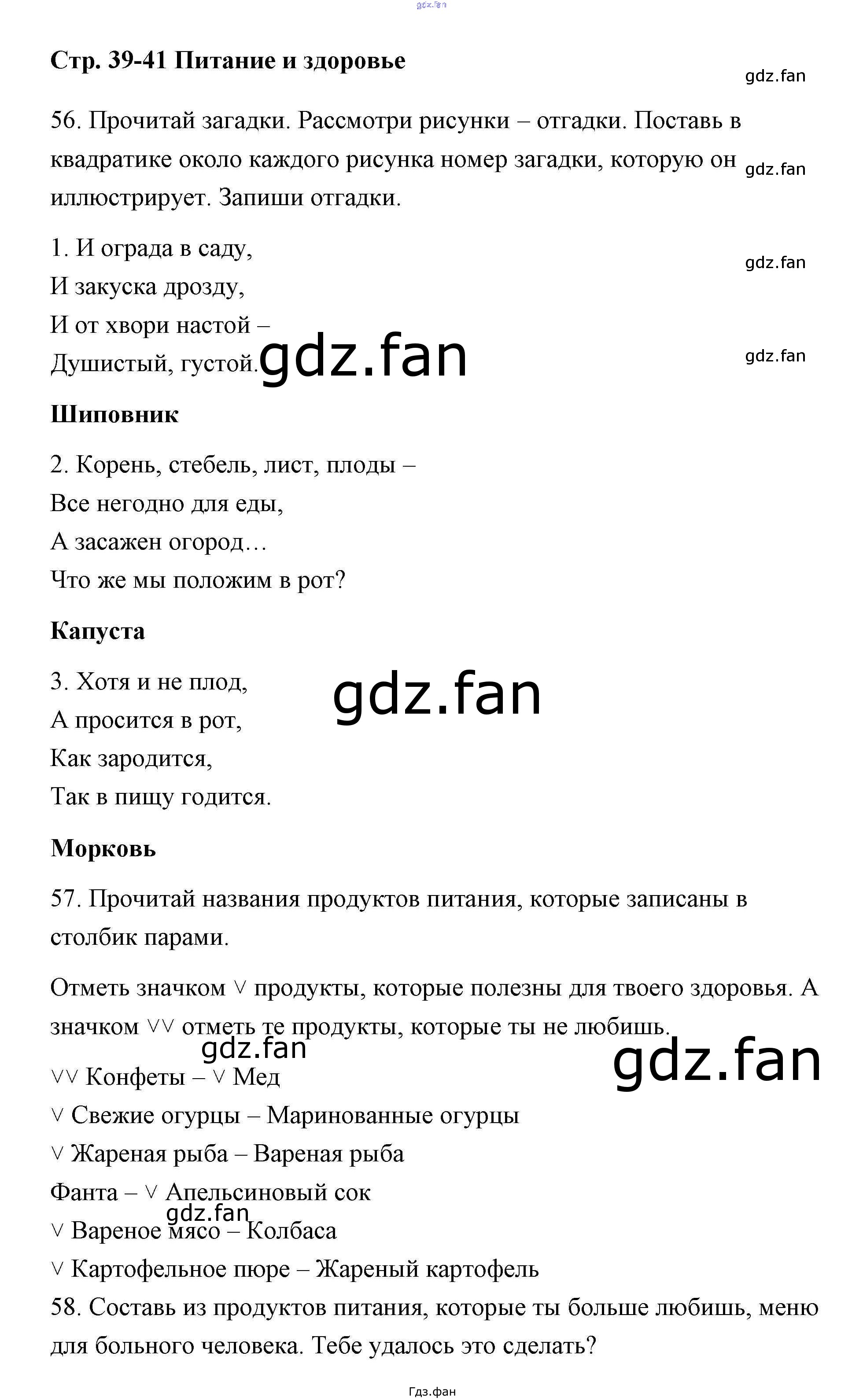 Проверка домашнего задания всегда занимает большое количество времени. На помощь приходит ГДЗ фан по Окружающему миру второго класса. Здесь собраны популярные ответы на 39-41 (№ 56, 58, 59) Окружающий мир 2 класс тетрадь для самостоятельной работы Федотова