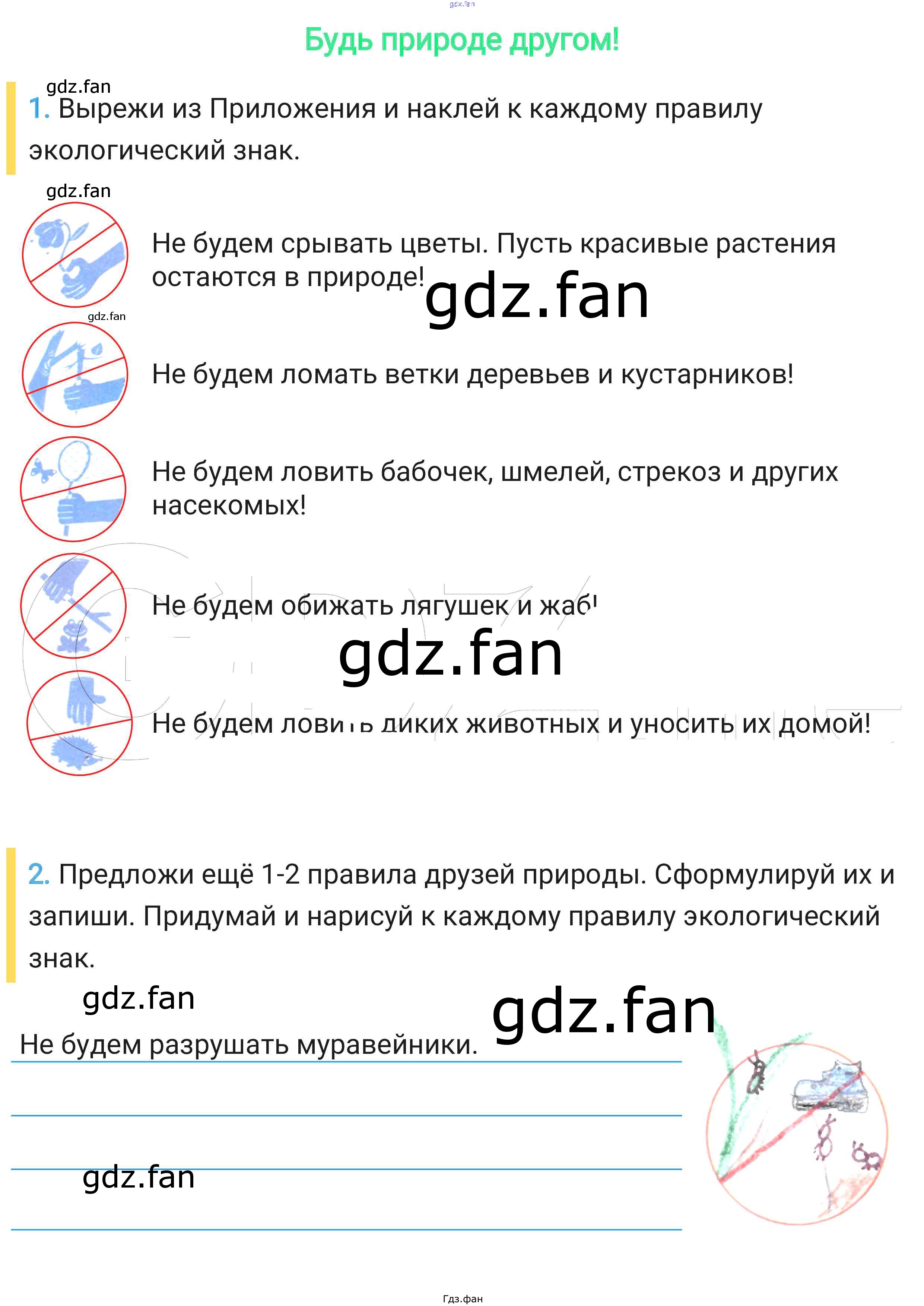 Проверка домашнего задания всегда занимает большое количество времени. На помощь приходит ГДЗ фан по Окружающему миру второго класса. Здесь собраны популярные ответы на 62-63 (Будь природе другом! № 1, 2, 3, 4) Окружающий мир 2 класс рабочая тетрадь Плешаков