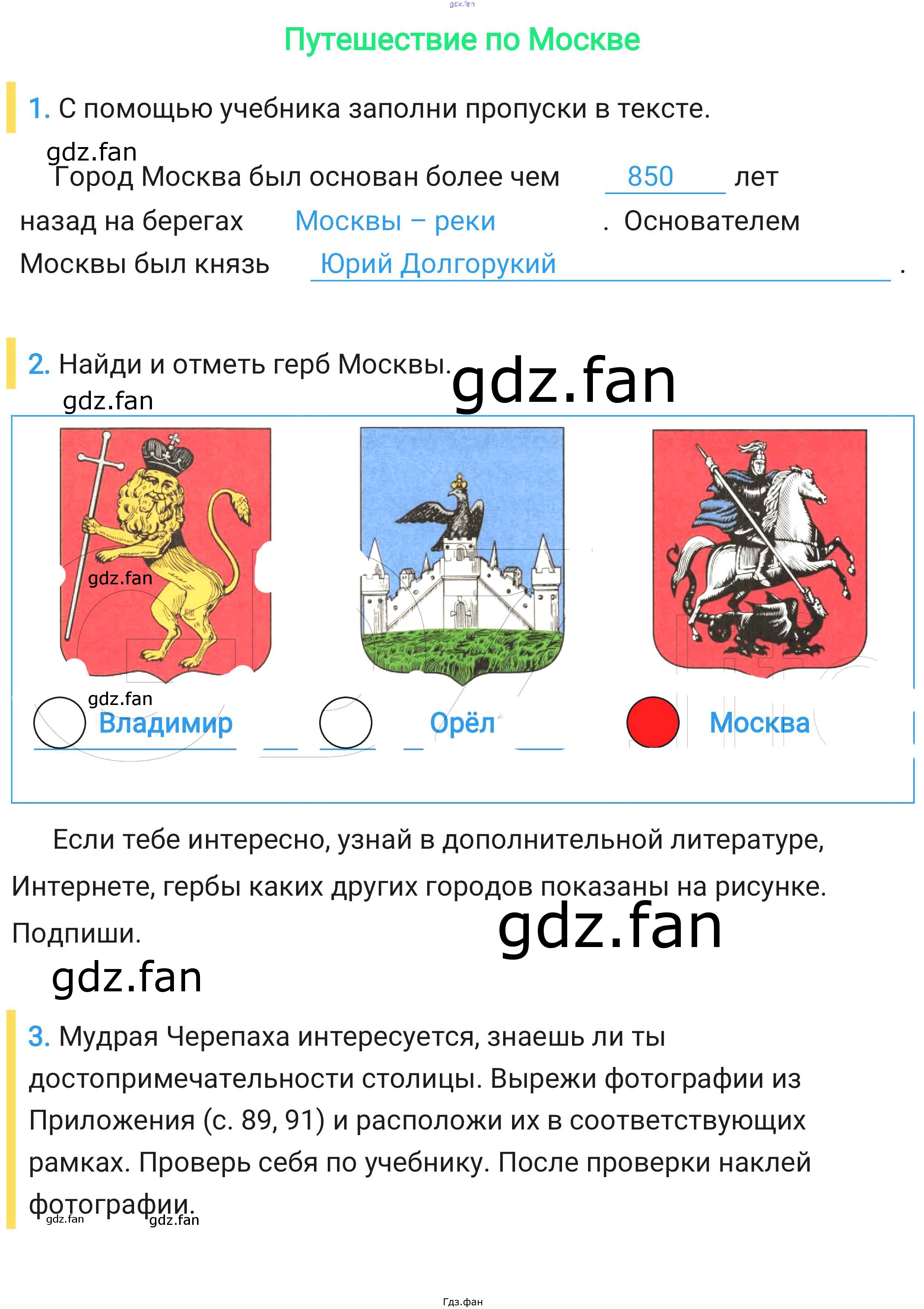 Проверка домашнего задания всегда занимает большое количество времени. На помощь приходит ГДЗ фан по Окружающему миру второго класса. Здесь собраны популярные ответы на 64-66 (Путешествие по Москве № 1, 2, 3, 4, 5, 6) Окружающий мир 2 класс рабочая тетрадь Плешаков
