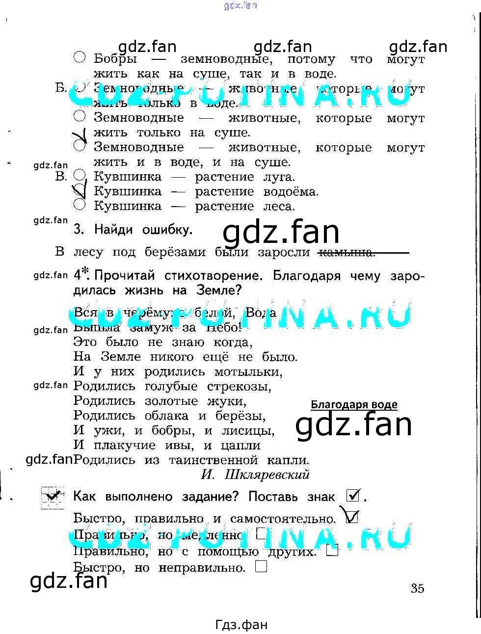Проверка домашнего задания всегда занимает большое количество времени. На помощь приходит ГДЗ фан по Окружающему миру второго класса. Здесь собраны популярные ответы на 35 (проверь себя 3, 4) Окружающий мир 2 класс рабочая тетрадь Виноградова Н.Ф.