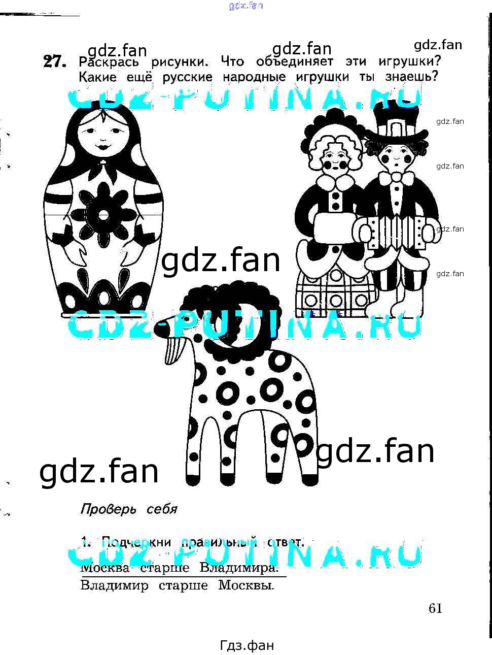 Проверка домашнего задания всегда занимает большое количество времени. На помощь приходит ГДЗ фан по Окружающему миру второго класса. Здесь собраны популярные ответы на 61 (задание 27, проверь себя 1) Окружающий мир 2 класс рабочая тетрадь Виноградова Н.Ф.