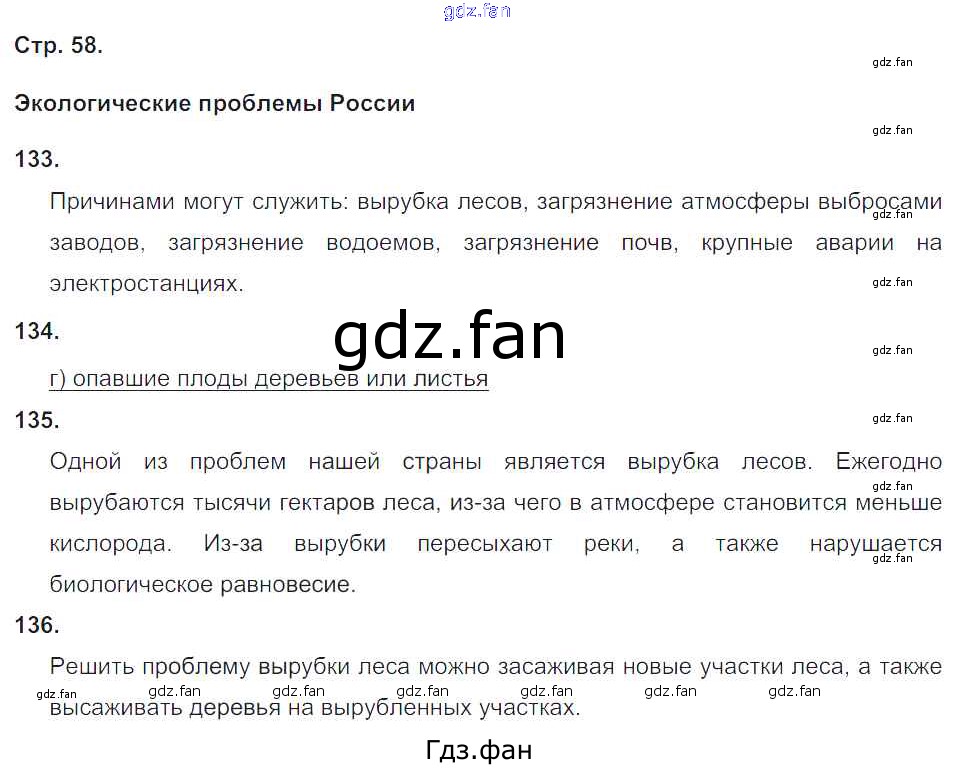 Проверка домашнего задания всегда занимает большое количество времени. На помощь приходит ГДЗ фан по Окружающему миру четвертого класса. Здесь собраны популярные ответы на 58 (№ 133, 134, 135, 136) Окружающий мир 4 класс рабочая тетрадь Ивченкова Г.Г.