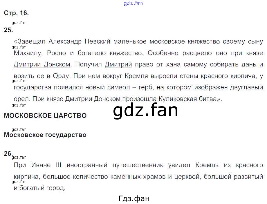 Проверка домашнего задания всегда занимает большое количество времени. На помощь приходит ГДЗ фан по Окружающему миру четвертого класса. Здесь собраны популярные ответы на 16 (№ 25, Московское царство № 26) Окружающий мир 4 класс рабочая тетрадь Ивченкова Г.Г.