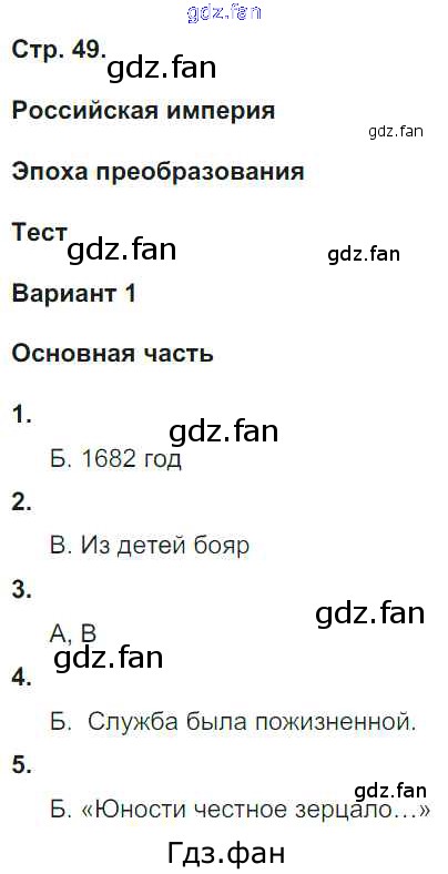 Проверка домашнего задания всегда занимает большое количество времени. На помощь приходит ГДЗ фан по Окружающему миру четвертого класса. Здесь собраны популярные ответы на 49 (Российская империя. Эпоха преобразования. Тест. Вариант 1 № 1, 2, 3, 4, 5) Окружающий мир 4 класс тесты и самостоятельные работы Потапов И.В.