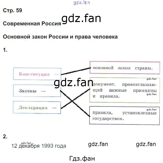 Проверка домашнего задания всегда занимает большое количество времени. На помощь приходит ГДЗ фан по Окружающему миру четвертого класса. Здесь собраны популярные ответы на 59 (Современная Россия. Основной закон России и права человека № 1, 2) Окружающий мир 4 класс тетрадь для практических работ Тихомирова Е.М. (к новому уч. Плешакова А.А.)