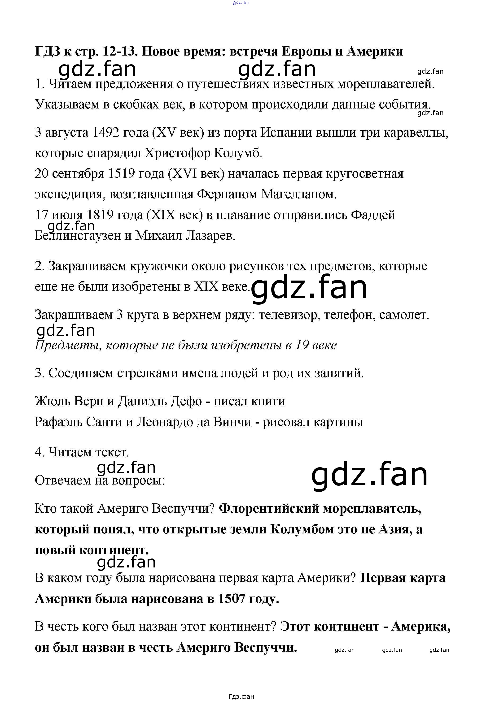 Проверка домашнего задания всегда занимает большое количество времени. На помощь приходит ГДЗ фан по Окружающему миру четвертого класса. Здесь собраны популярные ответы на 12-13 (Новое время: встреча Европы и Америки № 1, 2, 3, 4) Окружающий мир 4 класс тетрадь для практических работ Тихомирова