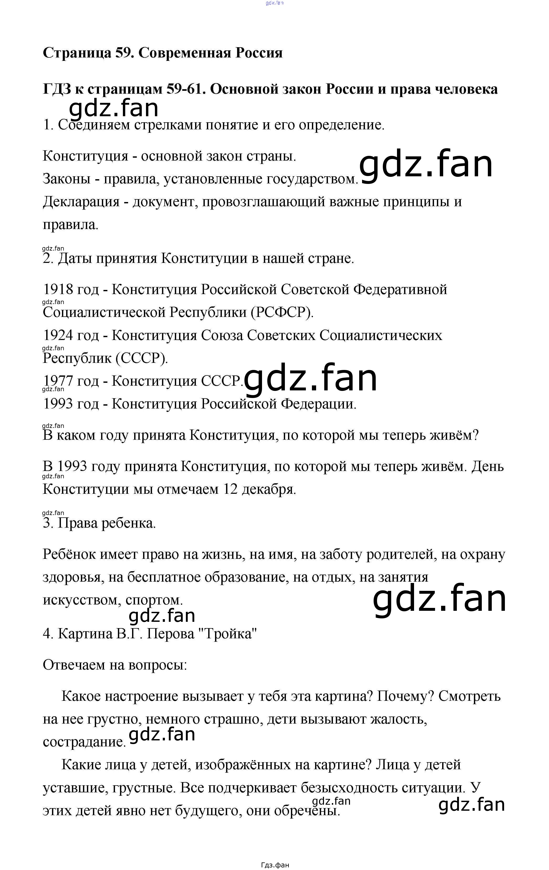 Проверка домашнего задания всегда занимает большое количество времени. На помощь приходит ГДЗ фан по Окружающему миру четвертого класса. Здесь собраны популярные ответы на 59 (Основной закон России и права человека № 1, 2, 3, 4, 5, 6, 7) Окружающий мир 4 класс тетрадь для практических работ Тихомирова