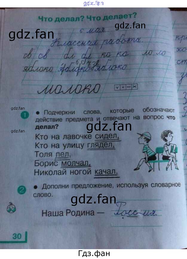 Проверка домашнего задания всегда занимает большое количество времени. На помощь приходит ГДЗ фан по Русскому языку первого класса. Здесь собраны популярные ответы на 30 (Что делал? Что делает? № 1, 2) Русский язык 1 класс рабочая тетрадь Андрианова Т.М.