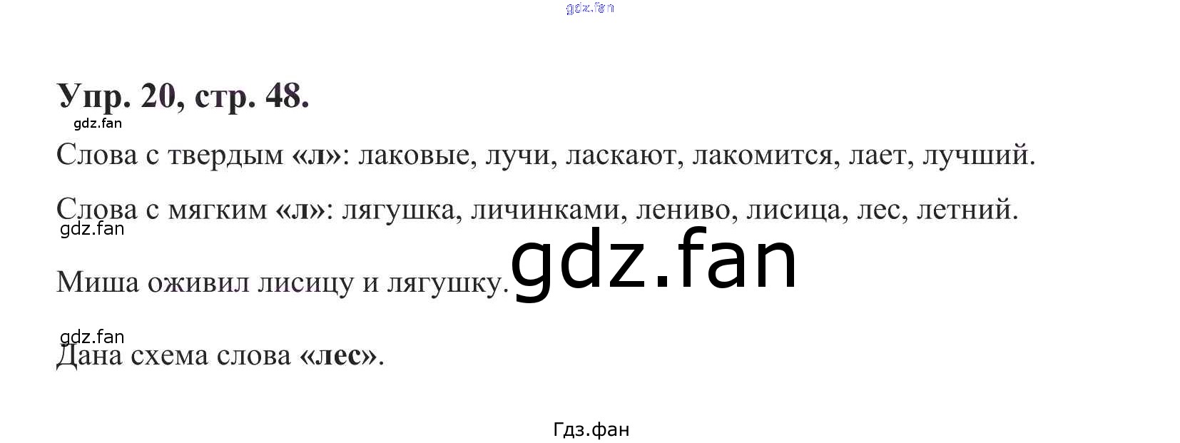 Проверка домашнего задания всегда занимает большое количество времени. На помощь приходит ГДЗ фан по Русскому языку первого класса. Здесь собраны популярные ответы на 20 (стр. 49) Русский язык 1 класс Чуракова Н.А.