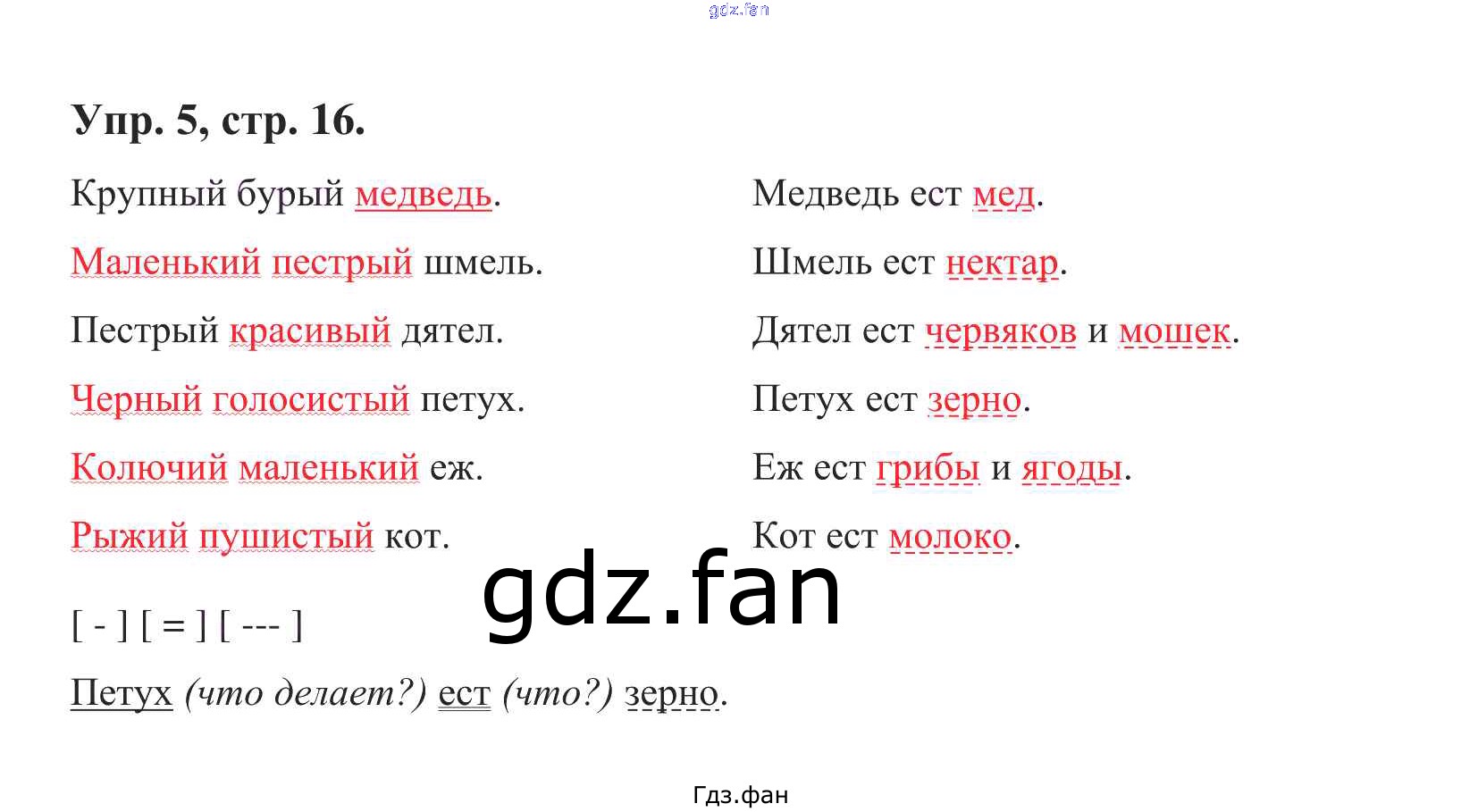 Проверка домашнего задания всегда занимает большое количество времени. На помощь приходит ГДЗ фан по Русскому языку первого класса. Здесь собраны популярные ответы на 5 (стр. 16) Русский язык 1 класс Чуракова Н.А.