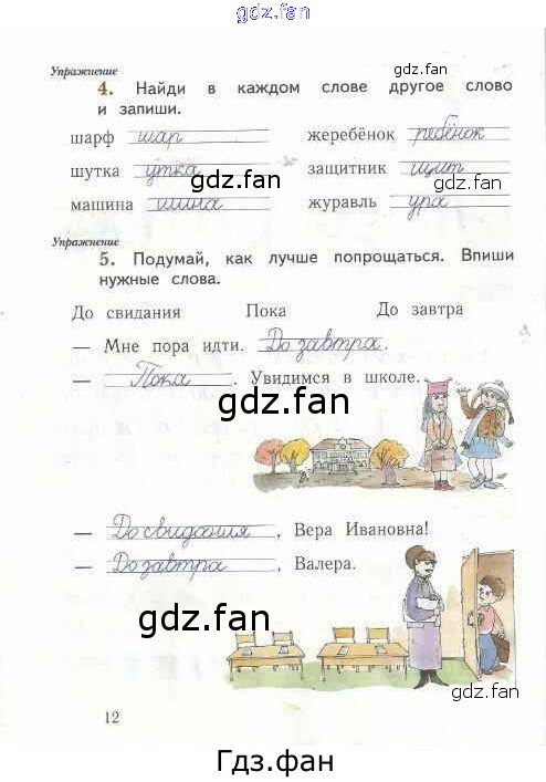 Проверка домашнего задания всегда занимает большое количество времени. На помощь приходит ГДЗ фан по Русскому языку первого класса. Здесь собраны популярные ответы на 12 (№ 4, 5) Русский язык 1 класс рабочая тетрадь Иванов С.В.