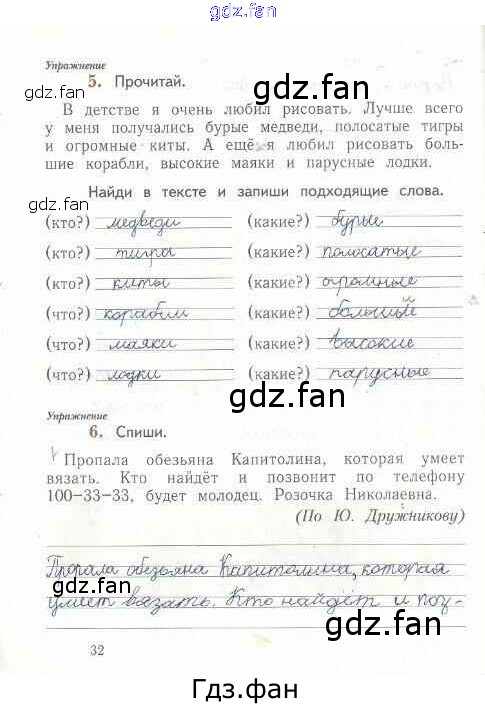 Проверка домашнего задания всегда занимает большое количество времени. На помощь приходит ГДЗ фан по Русскому языку первого класса. Здесь собраны популярные ответы на 32 (№ 5, 6) Русский язык 1 класс рабочая тетрадь Иванов С.В.