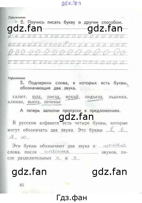 Проверка домашнего задания всегда занимает большое количество времени. На помощь приходит ГДЗ фан по Русскому языку первого класса. Здесь собраны популярные ответы на 85 (№ 2, 3) Русский язык 1 класс рабочая тетрадь Иванов С.В.