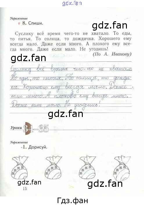 Проверка домашнего задания всегда занимает большое количество времени. На помощь приходит ГДЗ фан по Русскому языку первого класса. Здесь собраны популярные ответы на 15 (№ 8. Урок 34-35 № 1) Русский язык 1 класс рабочая тетрадь Иванов С.В.
