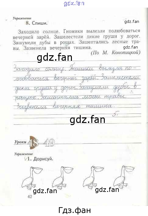 Проверка домашнего задания всегда занимает большое количество времени. На помощь приходит ГДЗ фан по Русскому языку первого класса. Здесь собраны популярные ответы на 42 (№ 8. Урок 48-49 № 1) Русский язык 1 класс рабочая тетрадь Иванов С.В.