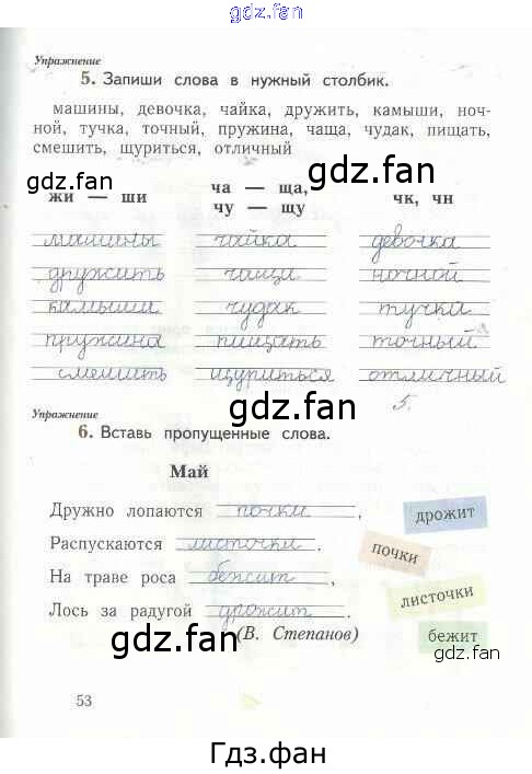 Проверка домашнего задания всегда занимает большое количество времени. На помощь приходит ГДЗ фан по Русскому языку первого класса. Здесь собраны популярные ответы на 53 (№ 5, 6) Русский язык 1 класс рабочая тетрадь Иванов С.В.