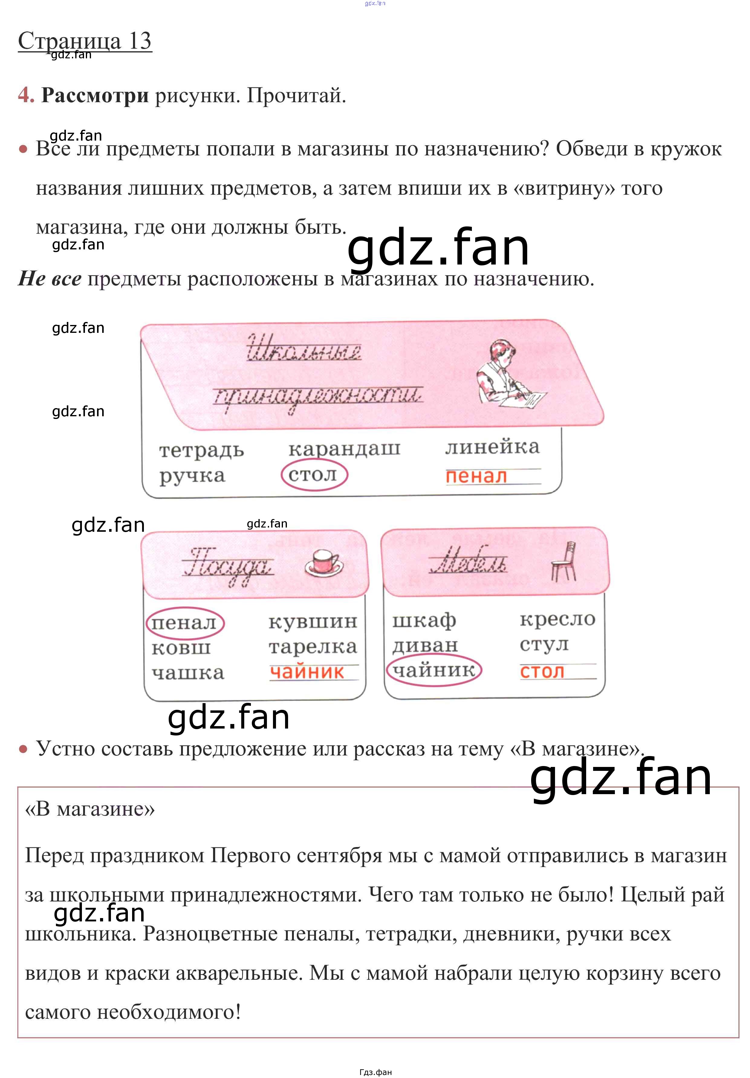 Проверка домашнего задания всегда занимает большое количество времени. На помощь приходит ГДЗ фан по Русскому языку первого класса. Здесь собраны популярные ответы на стр. 13 (упражнение 4) Русский язык 1 класс рабочая тетрадь Канакина В.П.