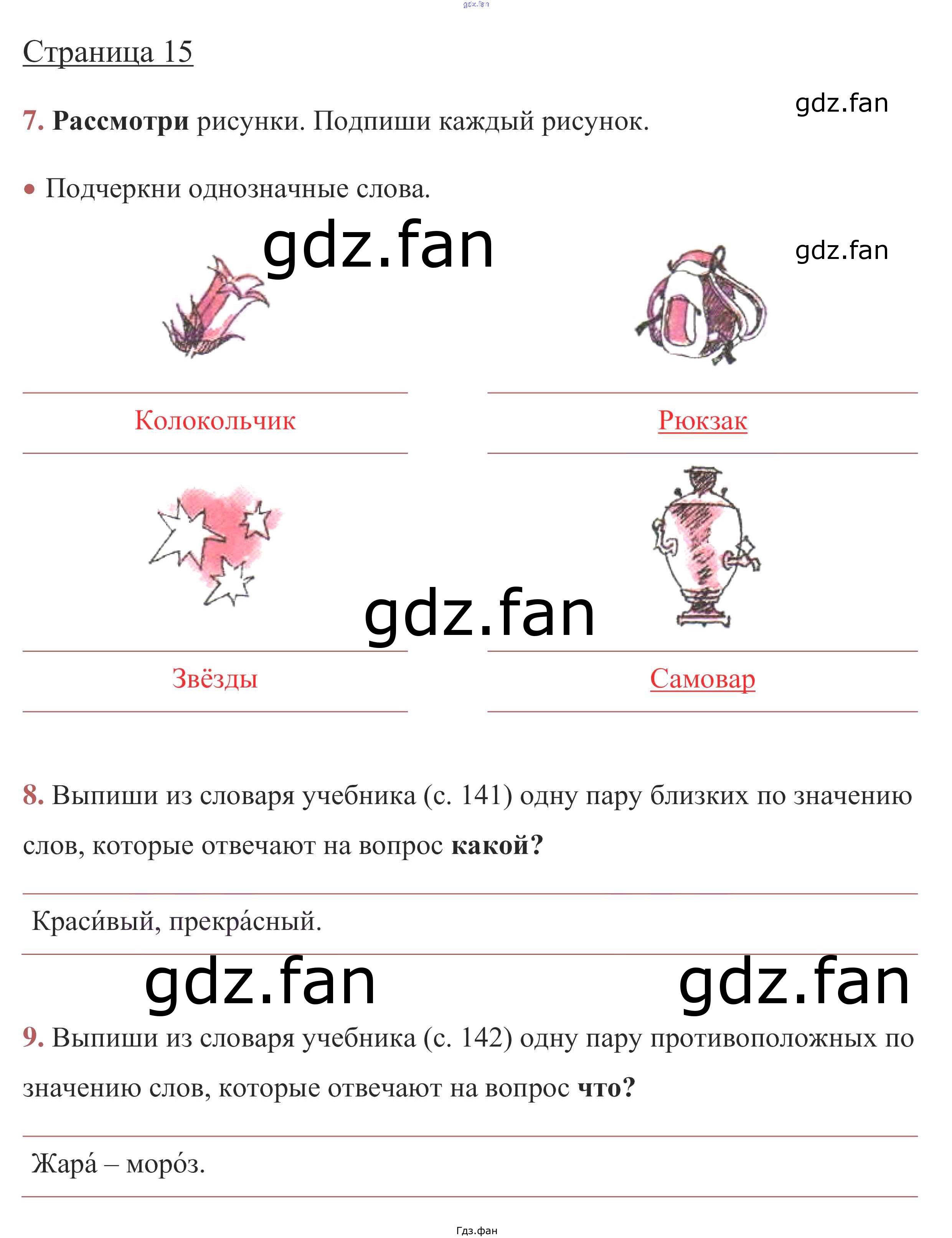 Проверка домашнего задания всегда занимает большое количество времени. На помощь приходит ГДЗ фан по Русскому языку первого класса. Здесь собраны популярные ответы на стр. 15 (упражнение 7, 8, 9) Русский язык 1 класс рабочая тетрадь Канакина В.П.