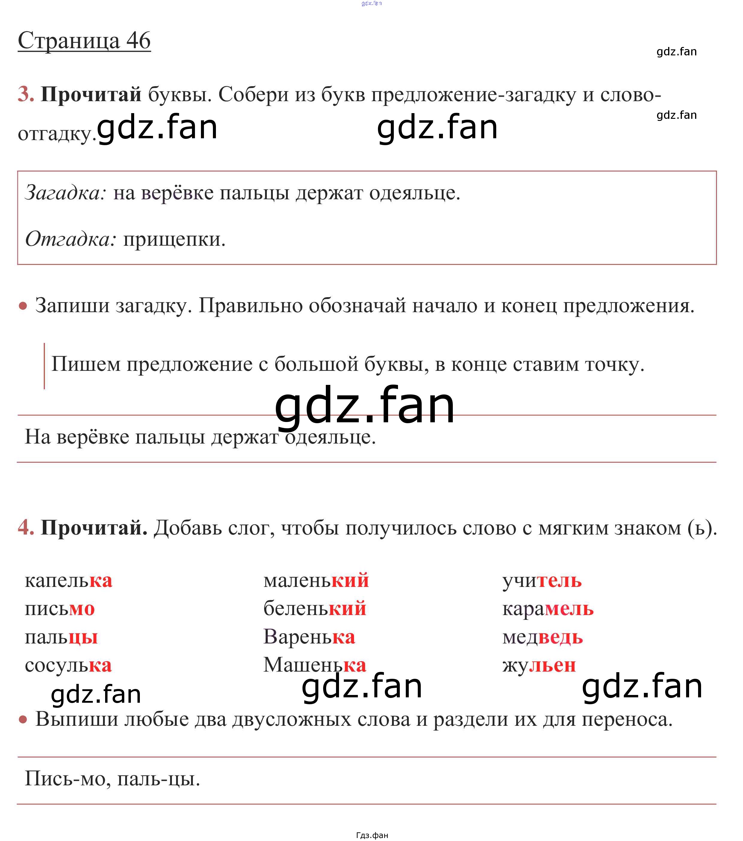 Проверка домашнего задания всегда занимает большое количество времени. На помощь приходит ГДЗ фан по Русскому языку первого класса. Здесь собраны популярные ответы на стр. 46 (упражнение 3, 4) Русский язык 1 класс рабочая тетрадь Канакина В.П.
