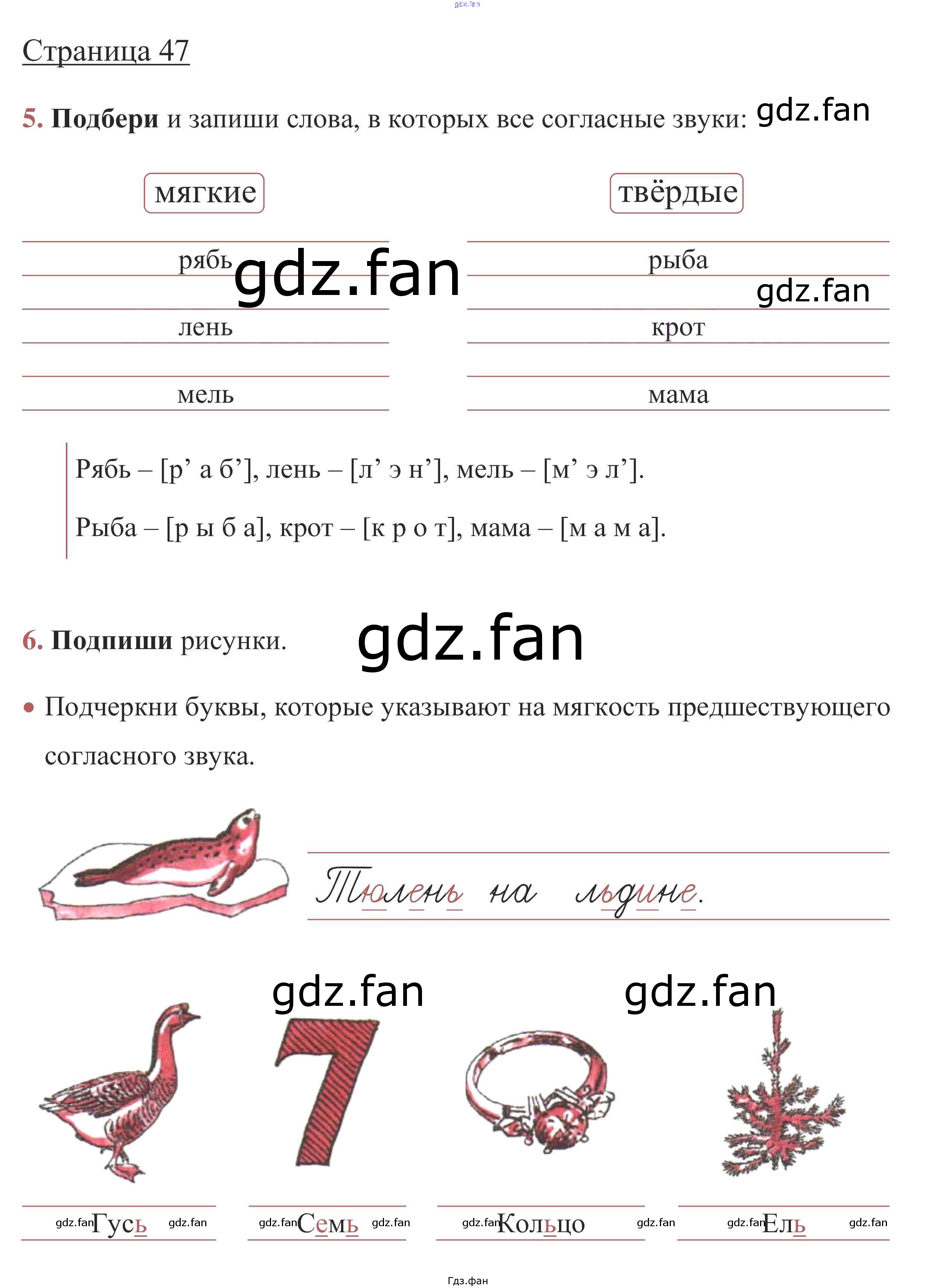 Проверка домашнего задания всегда занимает большое количество времени. На помощь приходит ГДЗ фан по Русскому языку первого класса. Здесь собраны популярные ответы на стр. 47 (упражнение 5, 6) Русский язык 1 класс рабочая тетрадь Канакина В.П.