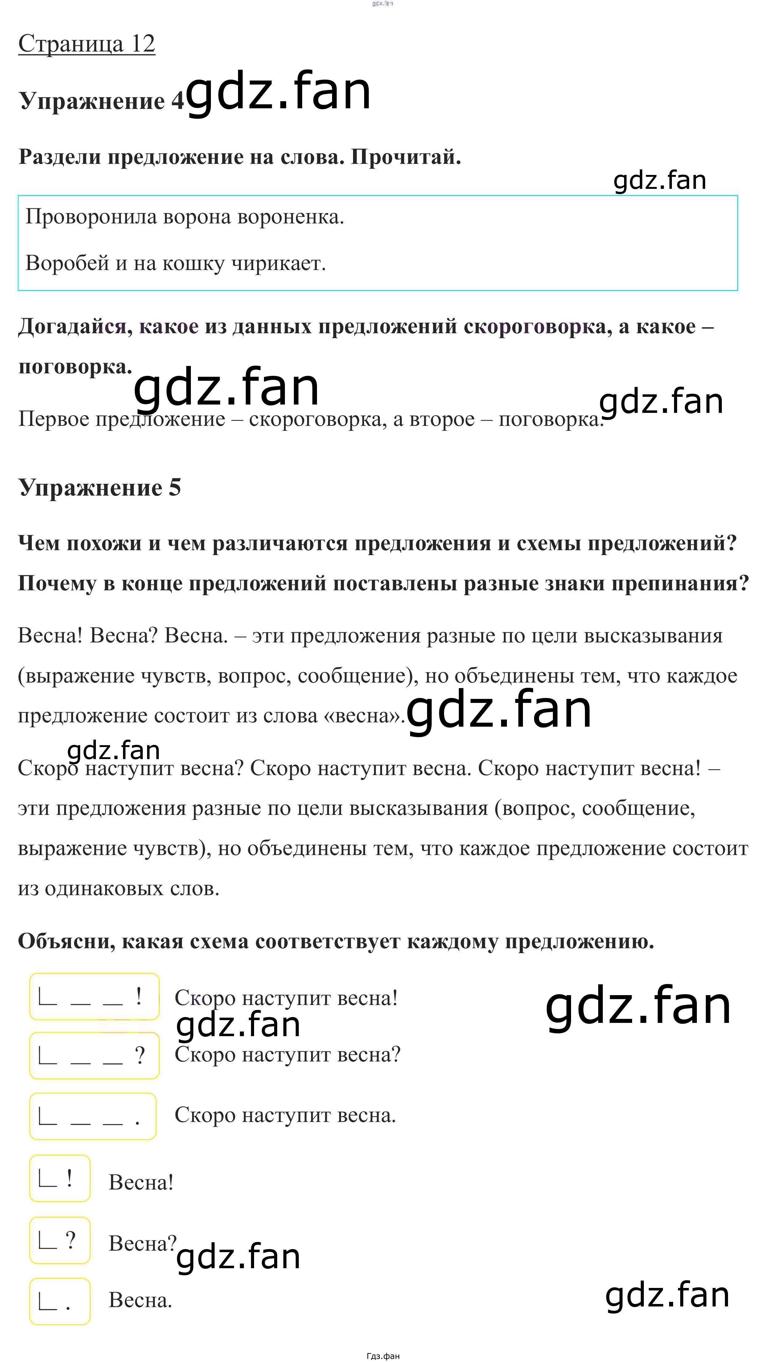 Проверка домашнего задания всегда занимает большое количество времени. На помощь приходит ГДЗ фан по Русскому языку первого класса. Здесь собраны популярные ответы на стр. 12 (упражнение 4, 5) Русский язык 1 класс Канакина В.П.