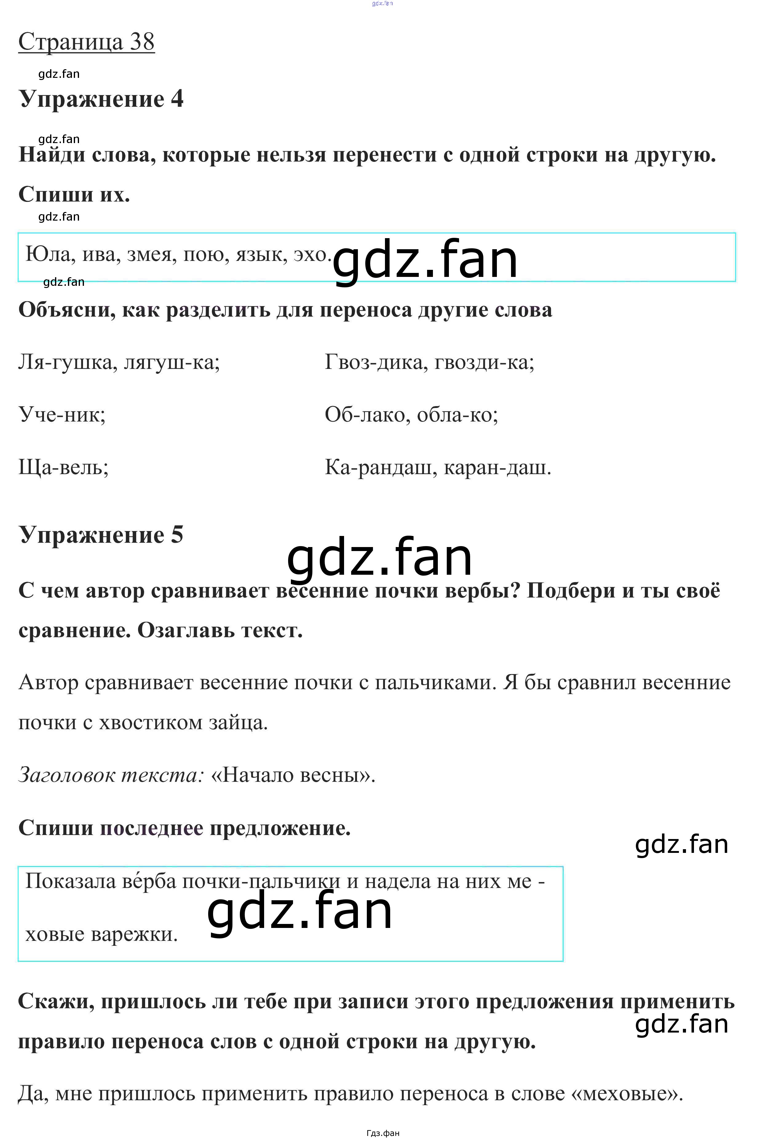 Проверка домашнего задания всегда занимает большое количество времени. На помощь приходит ГДЗ фан по Русскому языку первого класса. Здесь собраны популярные ответы на стр. 38 (упражнение 4, 5, проверь себя) Русский язык 1 класс Канакина В.П.