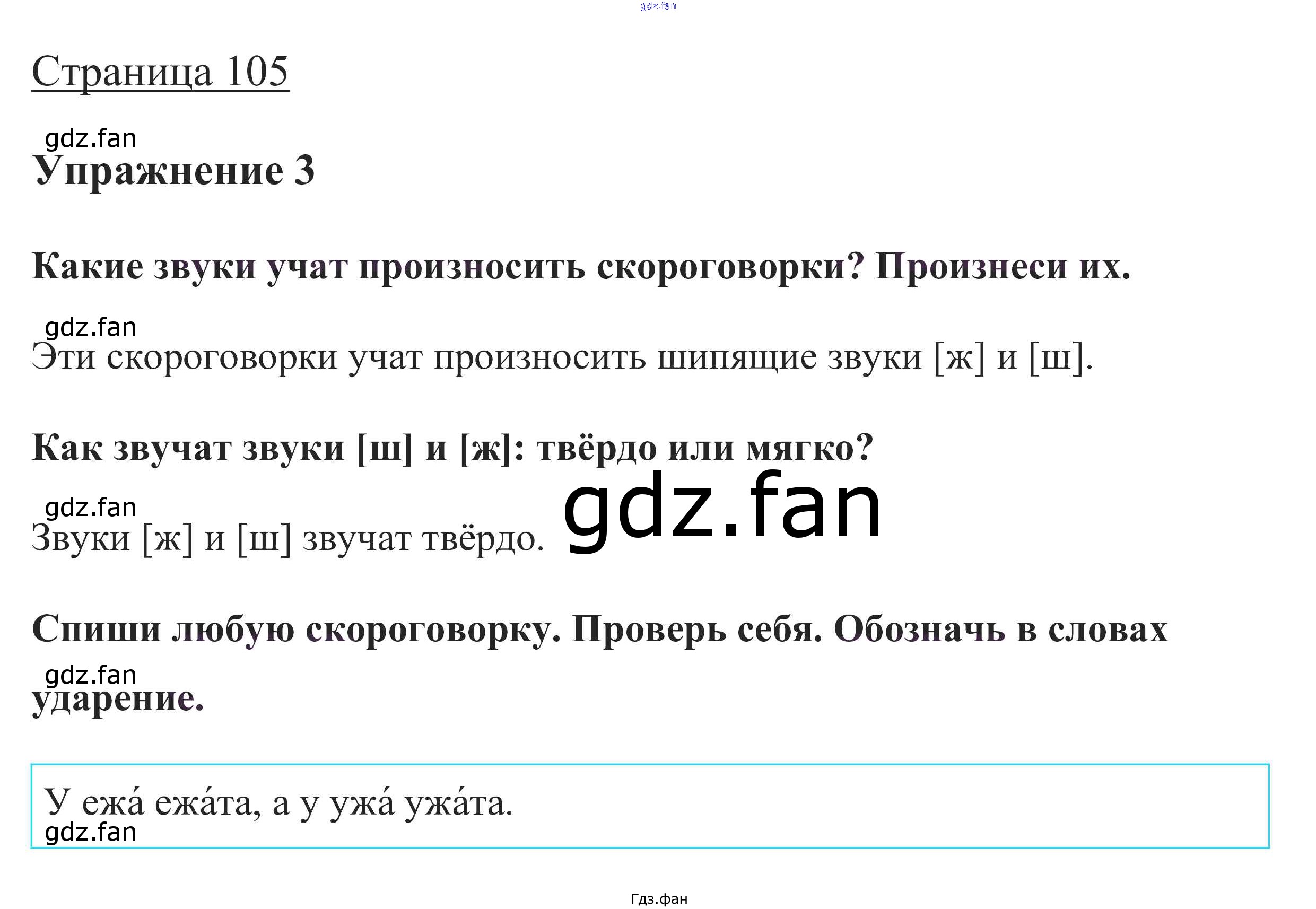 Проверка домашнего задания всегда занимает большое количество времени. На помощь приходит ГДЗ фан по Русскому языку первого класса. Здесь собраны популярные ответы на стр. 105 (упражнение 3) Русский язык 1 класс Канакина В.П.
