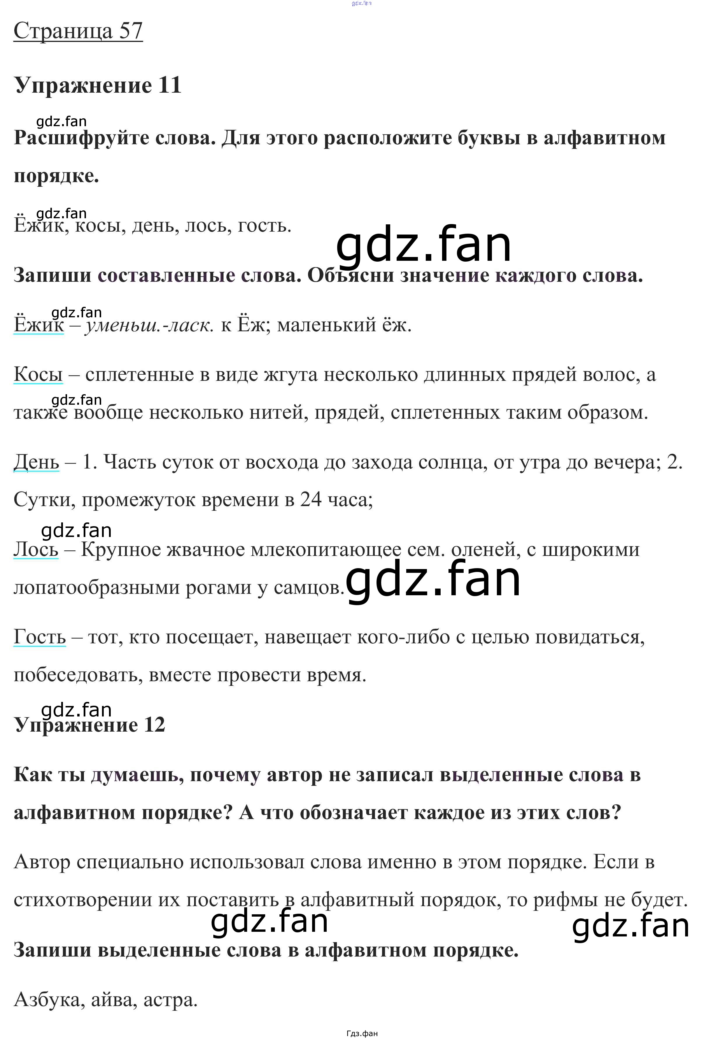 Проверка домашнего задания всегда занимает большое количество времени. На помощь приходит ГДЗ фан по Русскому языку первого класса. Здесь собраны популярные ответы на стр. 57 (упражнение 11, 12, проверь себя) Русский язык 1 класс Канакина В.П.