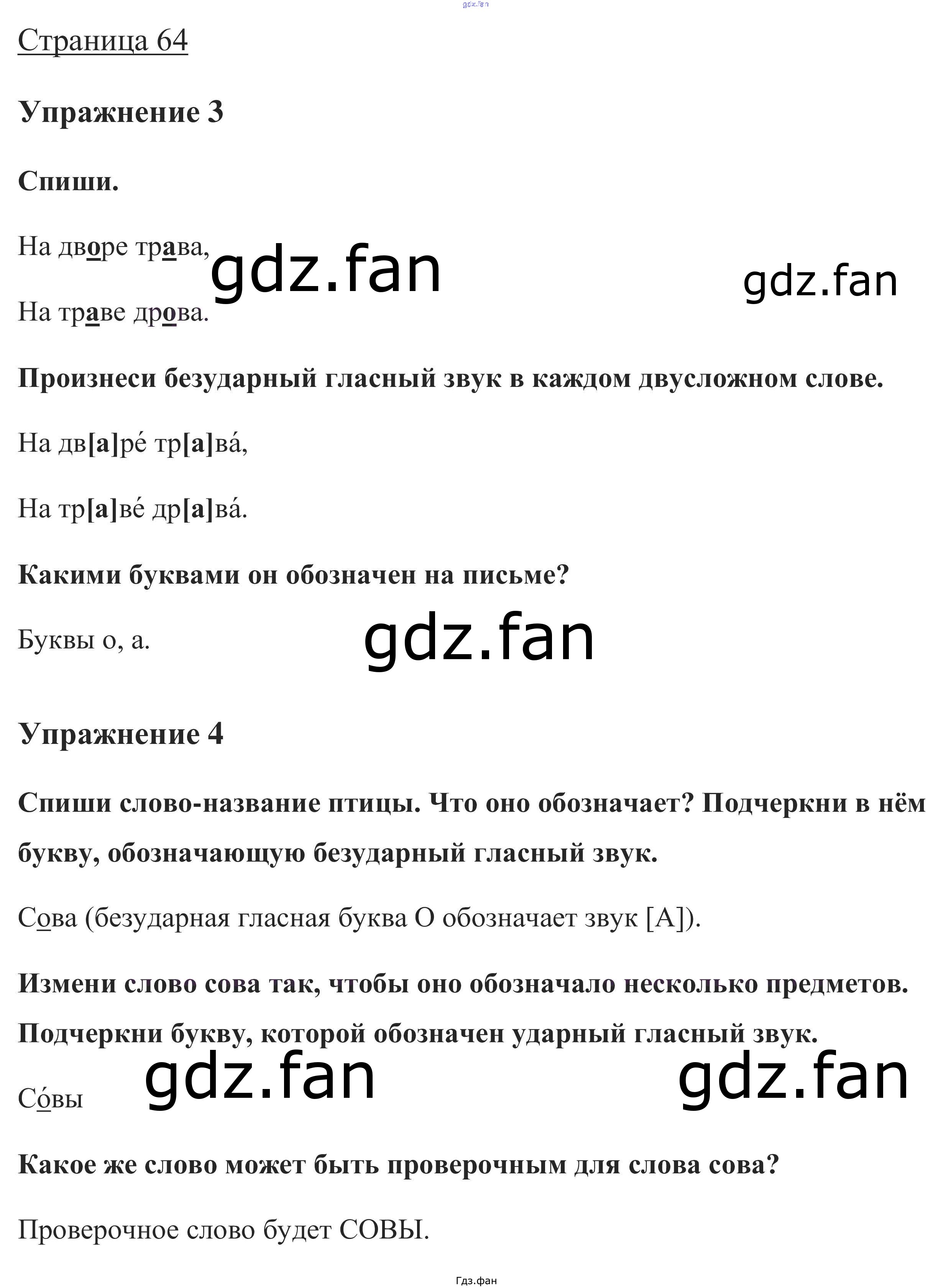 Проверка домашнего задания всегда занимает большое количество времени. На помощь приходит ГДЗ фан по Русскому языку первого класса. Здесь собраны популярные ответы на стр. 64 (упражнение 3, 4) Русский язык 1 класс Канакина В.П.