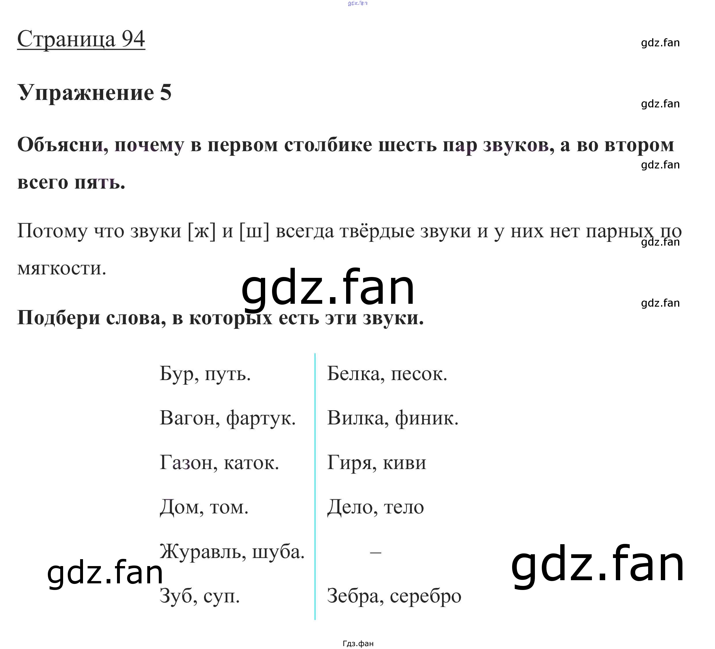 Проверка домашнего задания всегда занимает большое количество времени. На помощь приходит ГДЗ фан по Русскому языку первого класса. Здесь собраны популярные ответы на стр. 94 (упражнение 5) Русский язык 1 класс Канакина В.П.